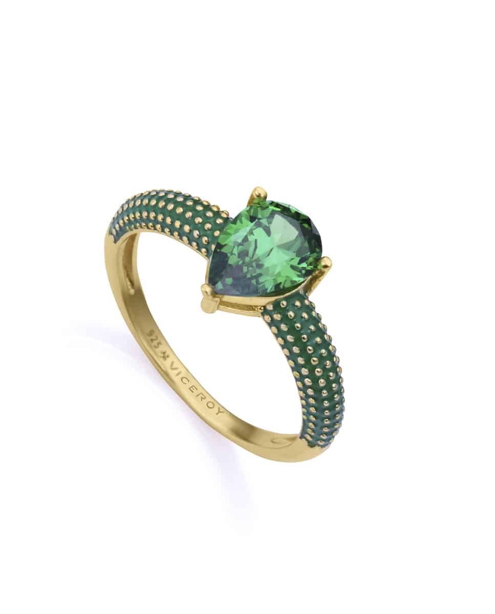 Anillo De Plata De Primera Ley Con Baño De Oro Con Esmalte Y Circonita Verde