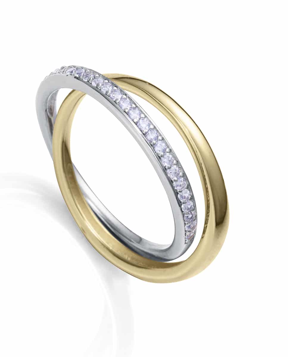 Anillo Doble De Plata De Ley Con Baño De Oro Y Rodio Con Fila De Circonitas Blancas