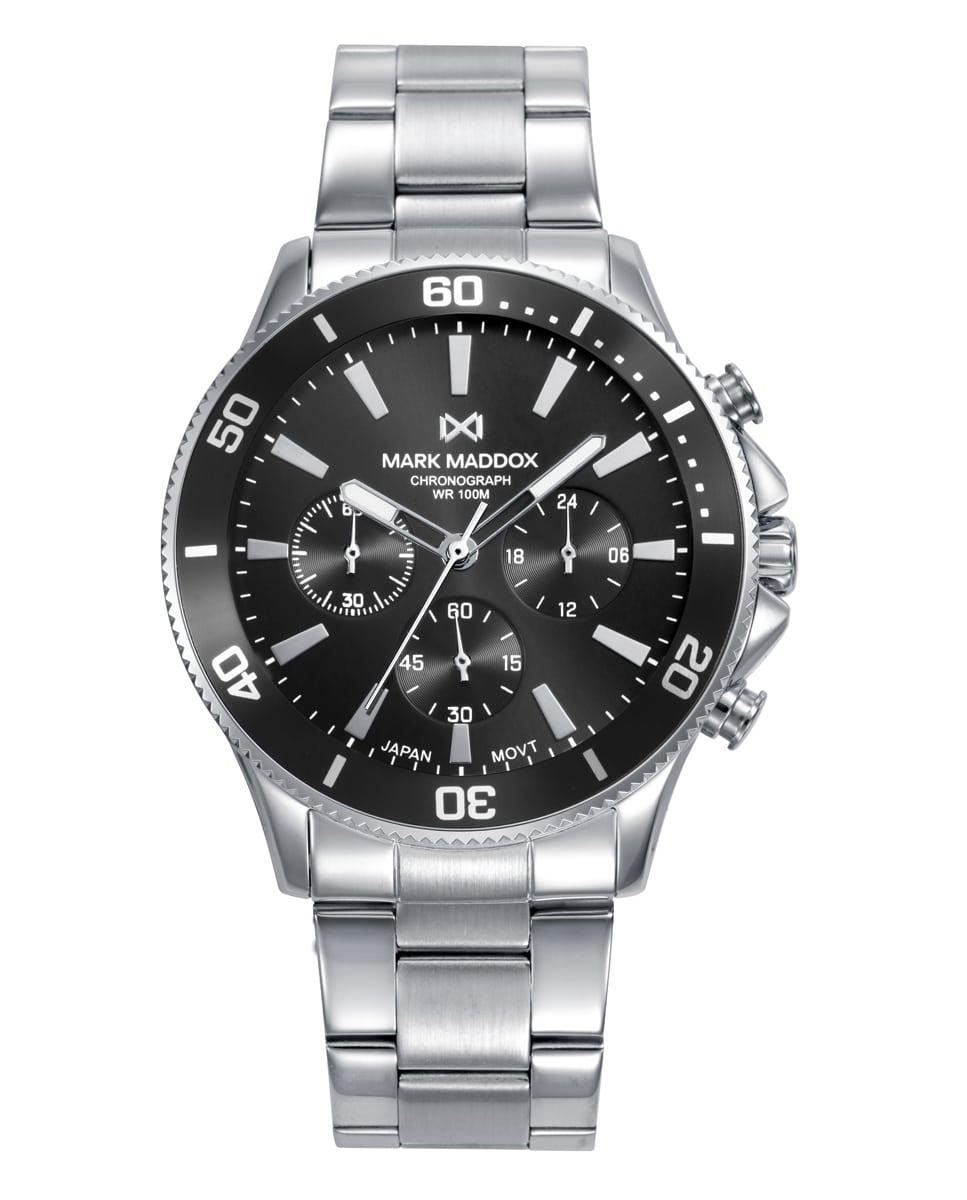 Con Un Diseño Atemporal Y Elegante, Este Reloj De Hombre Cronógrafo Presenta Una Caja Y Brazalete De Acero Que Combinan Resistencia Y Estilo. Su Esfera Negra Con Índices Y Las Agujas Horarias Y Contadoras En Color Plata Garantizan Precisión Y Claridad, Mientras Que El Cristal Mineral Protege La Pieza, Convirtiéndola En Un Accesorio Sofisticado Y Versátil Para Cualquier Ocasión.
