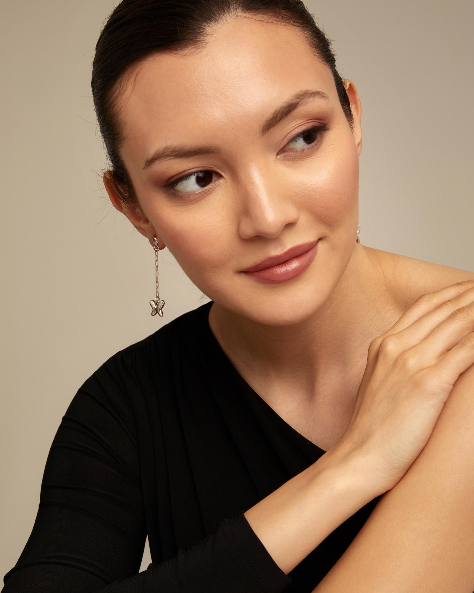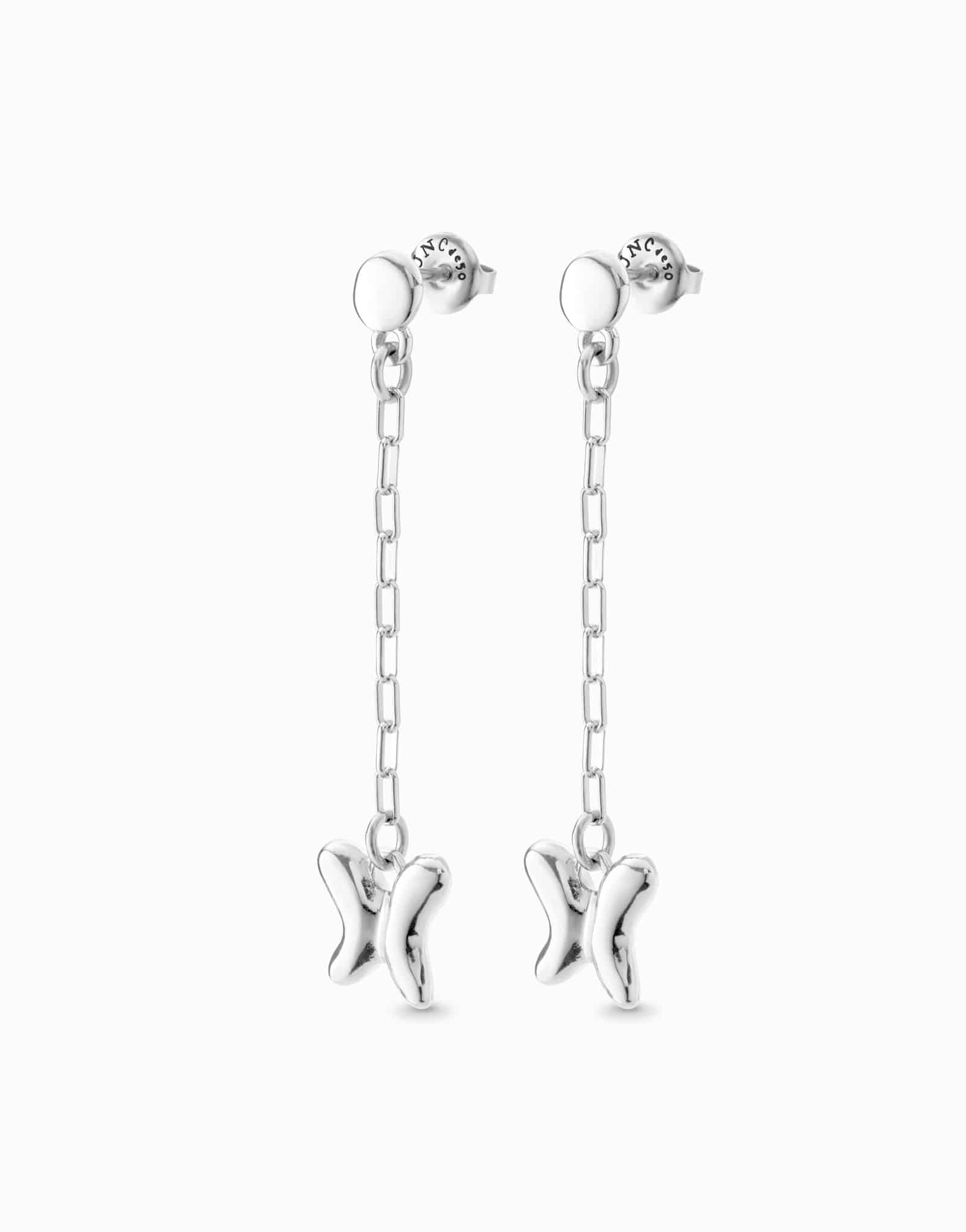 PENDIENTES DE PLATA LARGOS Y PEQUEÑA MARIPOSA FREE. Inspirada en elementos de la naturaleza siempre presentes en la historia de UNOde50, la colección Free incluye joyas como estos pendientes formados por una cadena colgante de pequeños eslabones, de la que depende una pequeña mariposa. Joya Made in Spain, elaborada 100% artesanalmente, consiguiendo así un acabado de diseño único.