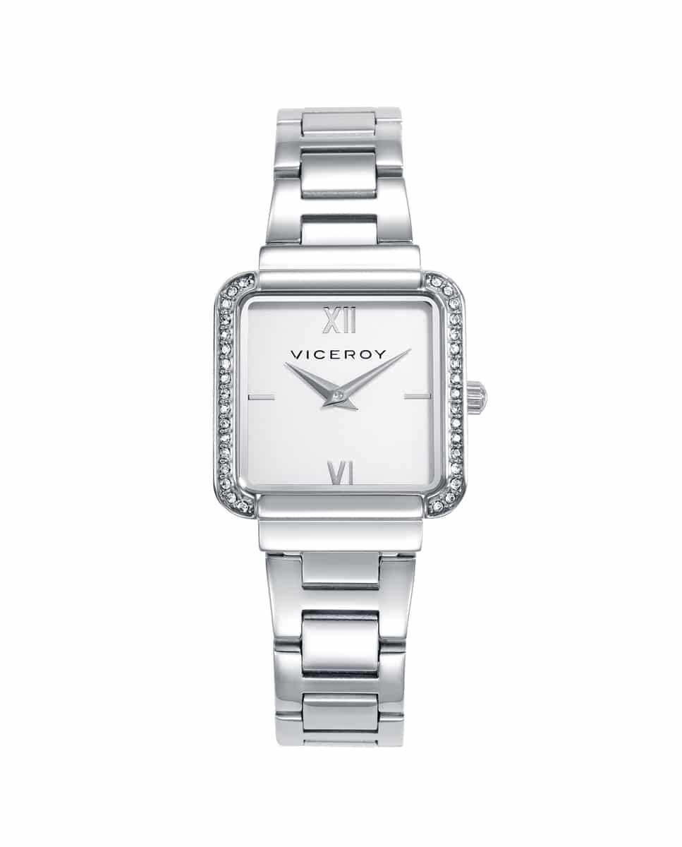 Elegante Reloj De Mujer De Dos Agujas Destaca Por Su Diseño Clásico Con Un Toque De Brillo. La Caja De Acero Está Adornada Con Circonitas, Aportando Un Toque Sutil De Lujo, Mientras Que El Brazalete De Acero Complementa El Conjunto Con Un Estilo Refinado. Una Pieza Ideal Para Quienes Buscan Un Accesorio Que Combine Elegancia Y Funcionalidad En Cualquier Ocasión.