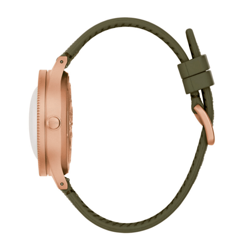 Entre sus características distintivas se incluyen una esfera verde militar con un inserto de bisel bidireccional de aluminio a juego, un conjunto de manecillas inspirado en el diseño vintage con manecillas e índices luminiscentes, una tira indicadora bicolor de humedad y un cristal de zafiro abombado con un recubrimiento antirreflejante de 5 capas.