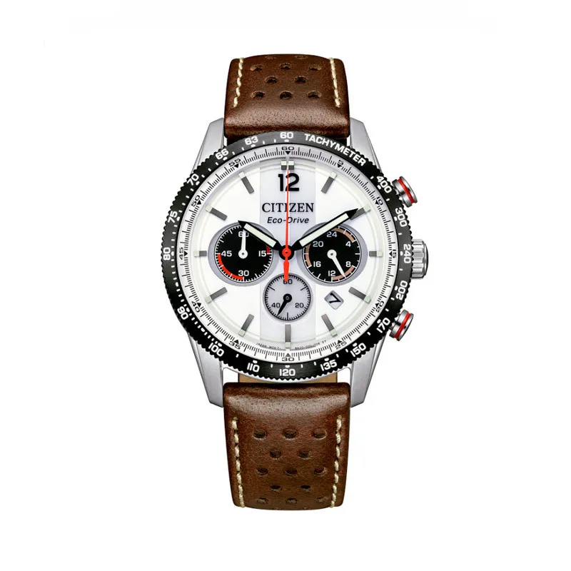 En su interior, la tecnología Eco-Drive proporciona una precisión constante alimentada por la luz, eliminando la necesidad de cambiar la pila y aportando una solución práctica y sostenible. La función de cronógrafo añade un componente técnico que refuerza su carácter funcional, permitiendo medir el tiempo con exactitud sin renunciar a la elegancia.