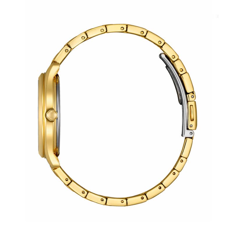 Citizen FE6122‑64A es una muestra exquisita de cómo la tradición relojera se encuentra con la innovación eficiente, proyectando una presencia femenina y sofisticada que trasciende tendencias. Desde el primer momento, este reloj capta la atención con su esfera blanca luminosa de 33,5 mm, que se complementa con una caja de acero inoxidable con acabado dorado meticulosamente trabajado, logrando un equilibrio perfecto entre estilo clásico y modernidad. Los índices aplicados y las agujas, en tonos dorados y negros, ofrecen una lectura clara y elegante que realza cualquier atuendo, desde el de diario hasta el más formal.