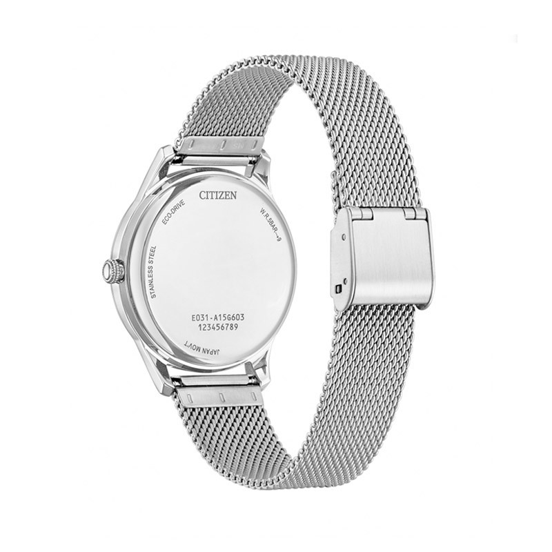 Este modelo incorpora la tecnología Eco-Drive (calibre E031), un sistema que convierte cualquier tipo de luz —natural o artificial— en energía para alimentar el reloj sin necesidad de cambiar la batería, ofreciendo una reserva de carga de hasta seis meses tras una carga completa y garantizando un funcionamiento continuo y fiable.