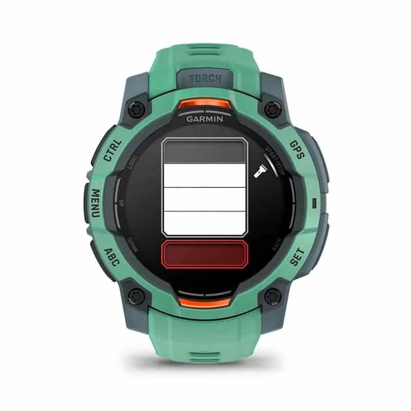 La pantalla AMOLED convierte cada dato, gráfico y alerta en una experiencia visual vívida y clara, sin sacrificar legibilidad al aire libre. El Instinct 3 AMOLED integra también una linterna LED multicolor directamente en el cuerpo del reloj, una funcionalidad exclusiva en su categoría, ideal para situaciones de emergencia, entrenamiento nocturno o tareas cotidianas con poca luz.