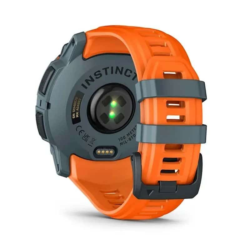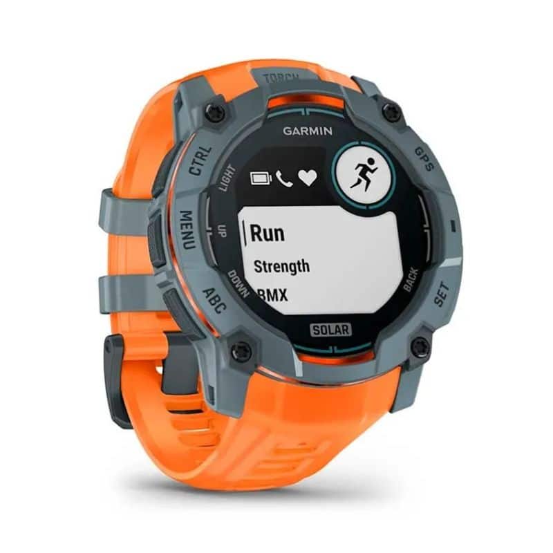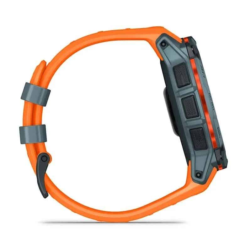 Completa su arsenal con notificaciones inteligentes, compatibilidad con Garmin Pay, control de música del teléfono, entrenamientos avanzados multideporte y acceso a Connect IQ para ampliar funcionalidades. Su correa Solstice Band naranja de silicona, combinada con el bisel gris “Twilight”, le da un aspecto robusto y técnico, sin perder elegancia ni personalidad.