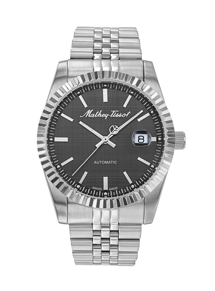 El Mathey-Tissot Mathy III Automatic representa una exquisita síntesis entre la excelencia técnica suiza y una estética sobria de inspiración contemporánea. Este modelo, con su cautivadora esfera antracita, se posiciona como una pieza de relojería que no solo marca el tiempo, sino que lo eleva a una expresión de estilo, madurez y precisión mecánica.