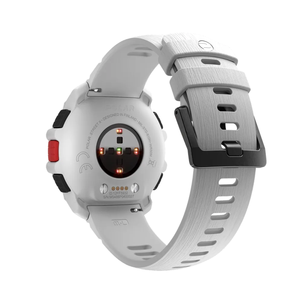 Urban Sports Watch POLAR Street X: Un reloj a prueba de golpes con GPS y pantalla táctil AMOLED, linterna LED integrada con Modo Luz Roja, registro de frecuencia cardíaca preciso, indicaciones de ruta giro a giro, diseño a prueba de golpes de estándar militar para el uso cotidiano y entrenamientos en la ciudad